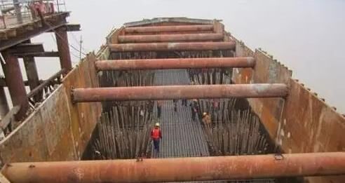 傾注法澆筑水下混凝土,可用于岸邊水深不起過1.5m的情況。新澆的混凝土堆用夯擊或振動(dòng)等方法擠入已澆的混凝土體中,使只有前沿的混凝土坡面與水直接接觸?;炷恋奶涠纫?~10cm為宜。采用此種方法應(yīng)盡量縮短澆筑時(shí)間,在澆筑工作未完成之前,先澆的混凝土不得凝固。