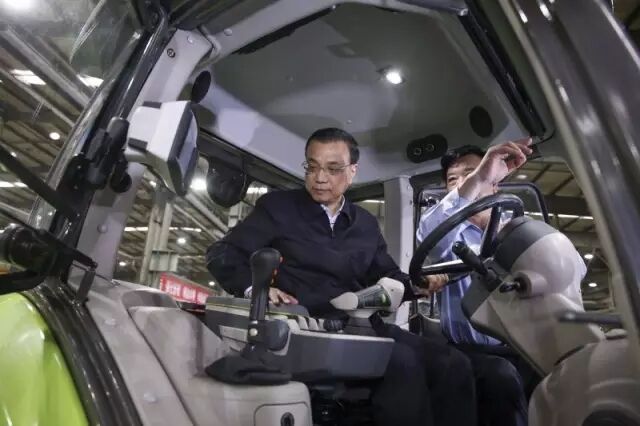 在中聯(lián)重科農(nóng)機裝備制造基地,李克強總理參觀了高端拖拉機生產(chǎn)線、大馬力拖拉機、生物制料機等科技創(chuàng)新產(chǎn)品,并登上一輛企業(yè)自主研發(fā)生產(chǎn)的PL2304大馬力拖拉機,這臺高性能、智能化的“大家伙”足有一人高的輪子、深耕可達半米??偫磉^去考察東北時提出要在制造大馬力拖拉機上實現(xiàn)突破。此后國產(chǎn)拖拉機一路加“馬”。總理說,農(nóng)業(yè)現(xiàn)代化需要大馬力拖拉機,“中國制造2025”更需要大馬力發(fā)動機。