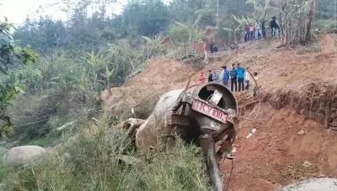 白石人劉某駕駛掛著桂K Y1093號牌的混凝土攪拌車,拉一車混凝土前往白雞村卸完混凝土后其駕車沿省道S370從白雞方向返回, 當(dāng)車輛行經(jīng)白雞村干河一下坡急轉(zhuǎn)彎路段時懷疑閃避2名學(xué)生,車輛失控翻下數(shù)十米深的溪澗中,當(dāng)?shù)匦l(wèi)生院、公安民警、消防接報先后趕到現(xiàn)場處置開展救援。