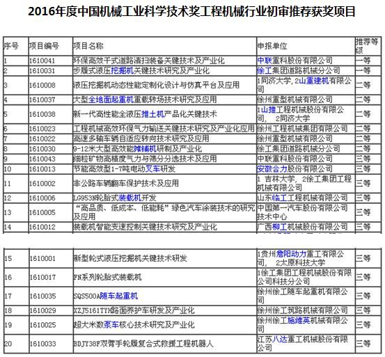 本年度共有20家行業(yè)企業(yè)獨立或與相關高校聯合報送了43項評審項目,涉及起重機械、掘進機械、環(huán)衛(wèi)機械、土方機械、路面機械、混凝土及制品機械、搶險救援機械、工業(yè)車輛、配套件等多類產品及關鍵技術的應用和產業(yè)化,申報項目呈現出創(chuàng)新點多、技術含量高、社會效益和經濟效益顯著等特點。